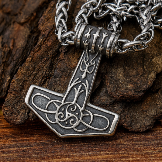 Thor's Hammer Necklace: Stainless Steel, Viking with Celtic-Knot