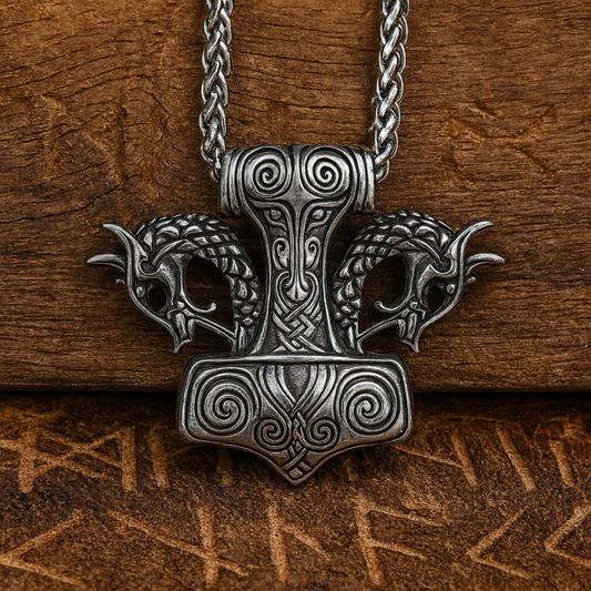 Viking Thor’s Hammer Necklace – Mjölnir Pendant with Dragon Heads
