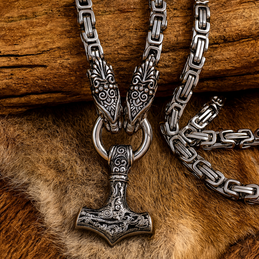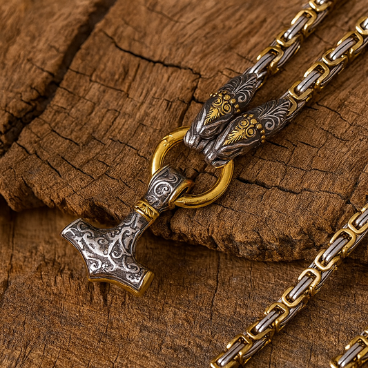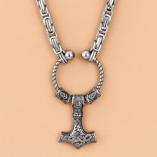 Norse King's Chain – Viking Thor Hammer Necklace with Valknut