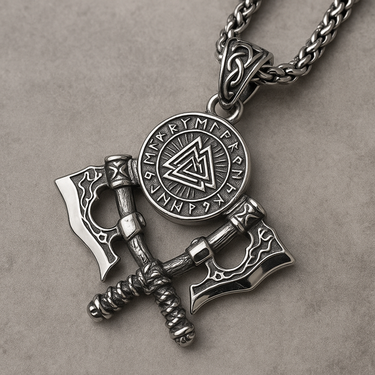 Nordic Valor: Exquisite Double Axe Pendant Necklace